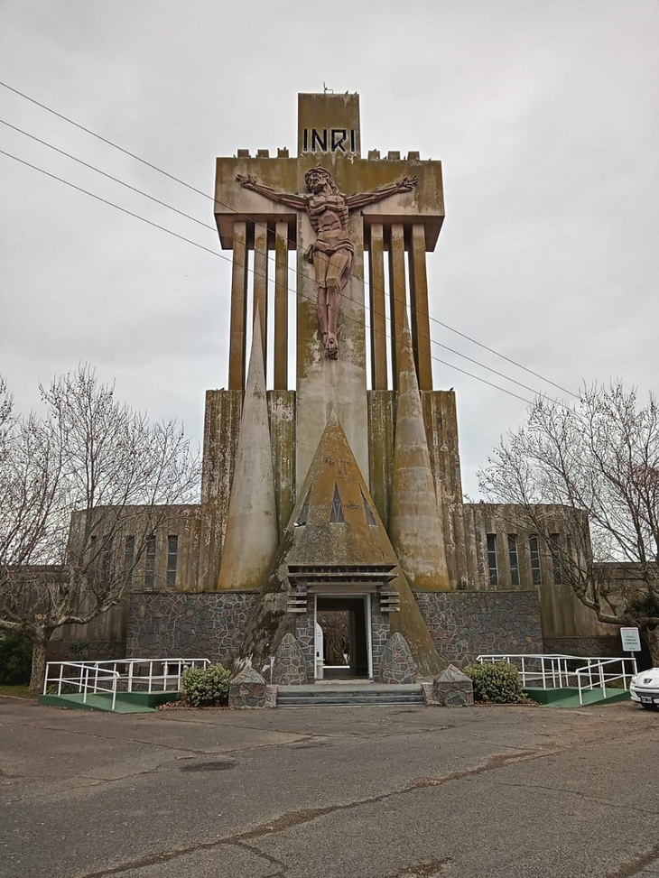 - El cementerio de Saldungaray no se queda atrás. La entrada es una gran rueda de cemento en la que se integran una cruz y la cabeza de Cristo.