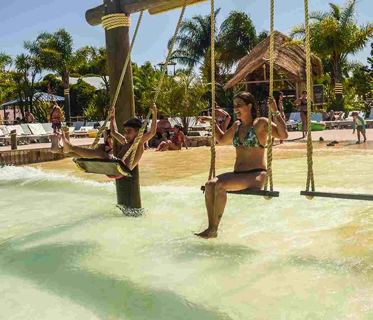 Distintos puntos de disfrute y relax convocan a la aventura y el descanso. La Piscina de Olas y el Castillo Encantado es un espacio mágico y refrescante para los más pequeños; toboganes estilo tubo con vueltas y contravueltas, con luces y otros abiertos provocan vértigo y emoción para un nivel medio; mientras que para quienes elijan la adrenalina extrema proponen una experiencia que involucra a todos los sentidos.