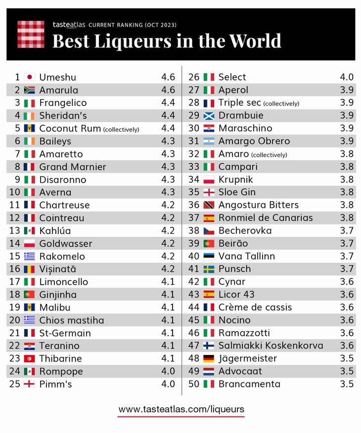 La guía TasteAtlas compartió el ranking de "los 50 licores mejor valorados". Entre todos los participantes, nuestro país ocupó un puesto destacable.