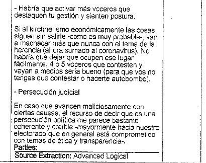 El mensaje tiene como fecha 05 de mayo de este año, figuraba como anotación en el bloc de notas, tenía a Macri como destinatario y fue recuperado gracias a la actividad de extracción forense practicado sobre el dispositivo de Nieto, quien el pasado 25 de junio, cuando fue allanado, se encerró en su automóvil para eliminar rastros. "Persecución judicial: en caso que avancen maliciosamente con ciertas causas, el recurso de decir que es una persecución política me parece bastante coherente y creíble-mayormente hacia nuestro electorado que en general está comprometido con temas de ética y transparencia", le detalló Nieto a Macri.
