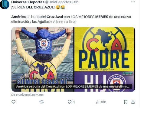 Y como era de esperar, en esta oportunidad, los aficionados del América invadieron de memes las redes sociales burlándose del Cruz Azul tras ganarle en la noche del domingo 2 a 1 y dejarlos eliminados en las semifinales del Torneo Clausura.