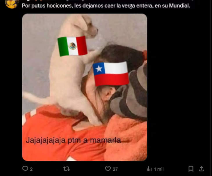 La imagen hacía un juego de palabras con el apellido del futbolista mexicano y desató la molestia de los aficionados del Tri, quienes lo consideraron una falta de respeto. Además, en la publicación se recordaba la goleada de 7-0 que Chile le propinó a México en la Copa América Centenario 2016, cuando se enfrentaron en el Levi’s Stadium de California.