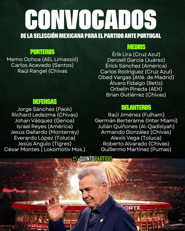 ¿Quiénes son los convocados de México para el duelo ante los lusos?