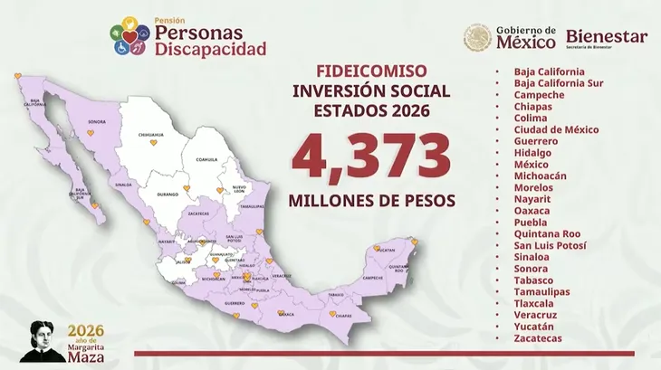 Uno de los anuncios más destacados de la jornada fue la confirmación de una bolsa extraordinaria enfocada en la inclusión a nivel nacional. A través del Fideicomiso de Inversión Social 2026, el gobierno destinará 4,373 millones de pesos exclusivamente para la Pensión de Personas con Discapacidad, un esfuerzo financiero sin precedentes que busca universalizar este derecho constitucional.