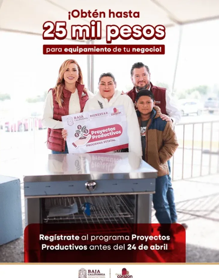 El Gobierno de Baja California lanzó una convocatoria clave para quienes buscan emprender o fortalecer un negocio propio. A través del programa Proyectos Productivos, se otorgarán apoyos de hasta 25,000 pesos, con fecha límite de registro el próximo 24 de abril de 2026.