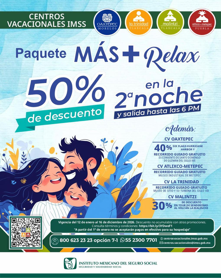 El paquete de descuentos anunciado por el IMSS aplica principalmente en su red de Centros Vacacionales, como Oaxtepec, Atlixco-Metepec, La Trinidad y Malintzi. Los beneficios incluyen una reducción del 50% en las cuotas de hospedaje para trabajadores del IMSS y, de manera muy especial, para todos los adultos mayores que presenten su credencial del INAPAM. Asimismo, se contemplan tarifas preferenciales en el uso de balnearios, zonas de campamento y áreas deportivas para el público en general y derechohabientes.
