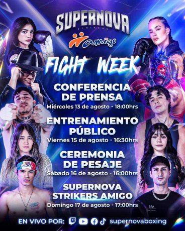 En términos sencillos, Supernova es una plataforma que combina el boxeo amateur con una producción de alto nivel donde los protagonistas son creadores de contenido, artistas y personalidades virales.
