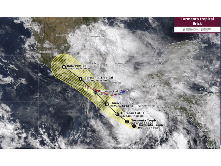 "Me informa la Coordinación Nacional de Protección Civil que la tormenta tropical Erick se encuentra a 325 kilómetros de Puerto Chiapas", escribió la mandataria en el inicio de su mensaje, el cual fue publicado en su cuenta oficial de X.
