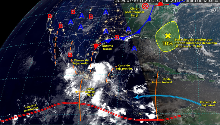 Pronósticos de lluvias para México hoy, martes 10 de julio 2024