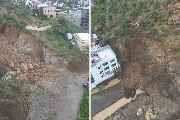 El desgajamiento del cerro ocurrió poco antes de las 10:00 horas y elementos de Bomberos de Los Cabos acudieron con un dron para realizar un reconocimiento aéreo de la zona y descartar mayores riesgos para las viviendas aledañas.