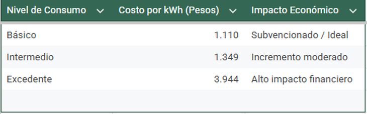 Como se observa, el salto de la tarifa básica a la excedente es de casi el 255%. Un descuido en el uso de electrodomésticos puede transformar un recibo económico en una carga financiera difícil de gestionar.