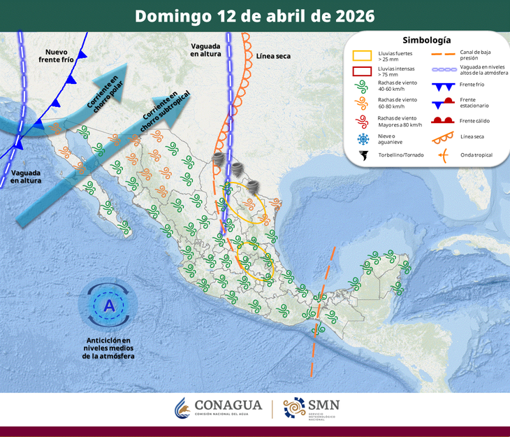 Clima extremo en México: alerta por posibles torbellinos en el norte y la llegada de un nuevo frente frío este domingo 12 de abril 2026 en CDMX y Edomex