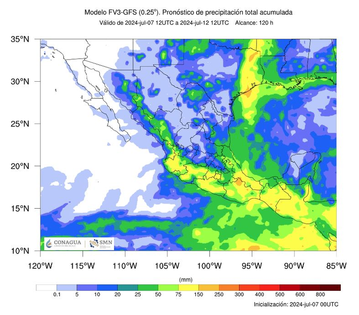 El Servicio Meteorológico Nacional (SMN) precisó que a partir del martes 9 de julio del 2024, y hasta el jueves 11, la onda tropical número 8 recorrerá el oriente, centro, sur y occidente del territorio mexicano, interaccionará con la vaguada monzónica que se localizará cerca de las costas del pacífico sur mexicano y provocará lluvias fuertes en México.