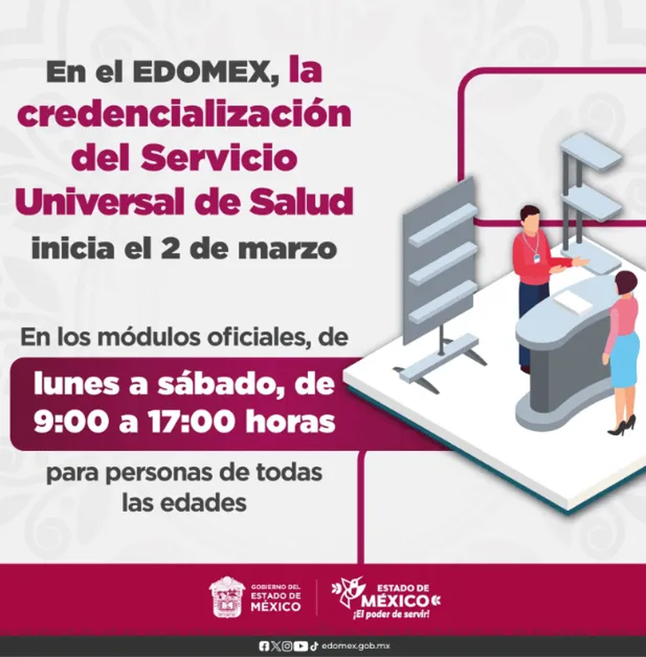 El Gobierno del Estado de México arrancará este 2 de marzo de 2026 el proceso de credencialización del Servicio Universal de Salud, una iniciativa que busca garantizar que todas las personas —sin importar si están afiliadas a algún seguro médico— tengan acceso a atención médica pública de calidad.