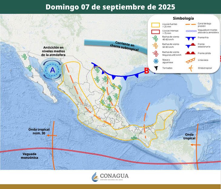 - Domingo 7 de septiembre: zonas serranas de Estado de México y Puebla.