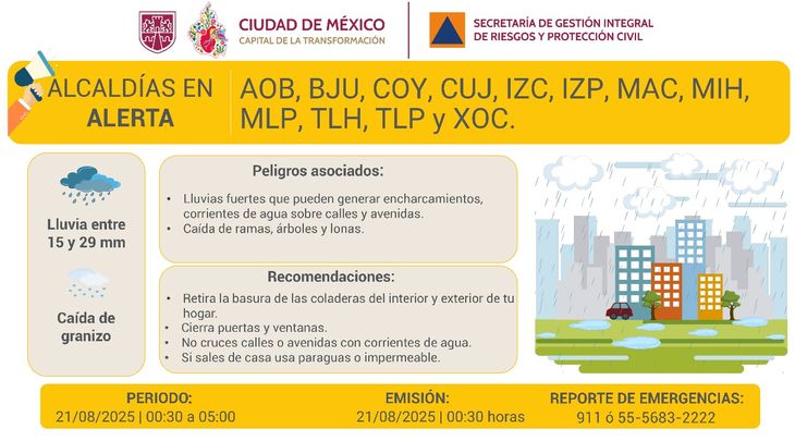 La Ciudad de México (CDMX) padece este jueves 21 de agosto de 2025 una nueva jornada con lluvias intensas, las cuales provocan encharcamientos e inundaciones en diversas zonas de la capital. En esta nota, toda la información actualizada sobre el estado del clima y sus consecuencias.