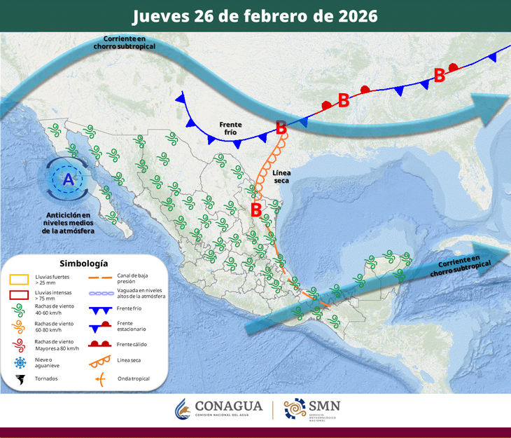 El Servicio Meteorológico Nacional (SMN) emitió una alerta por el inicio de una onda de calor en México este jueves 26 de febrero 2026, la cual se extenderá al menos hasta el próximo domingo en siete estados de la República. Este fenómeno se contrapone a lo que ocurre en gran parte del país, incluida la Ciudad de México (CDMX), que registra mínimas cerca de los 0°C en las primeras horas del día.