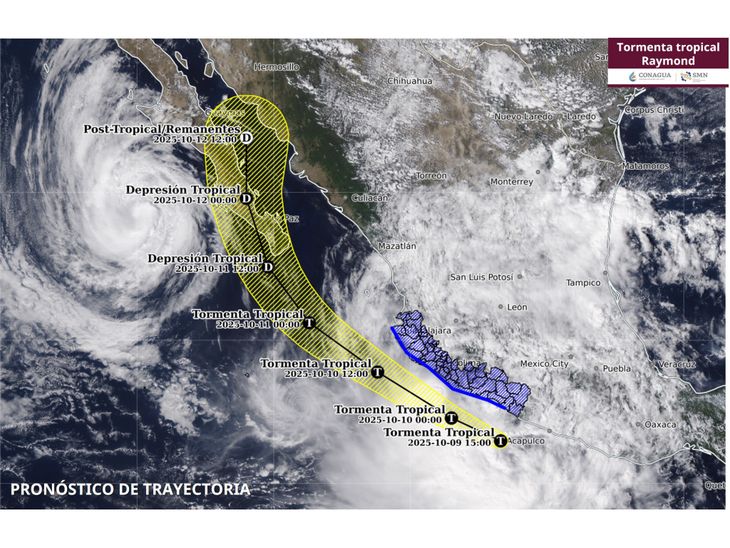 La tormenta tropical Raymond continúa su desplazamiento frente a la costa de Guerrero, su circulación y desprendimientos nubosos ocasionarán lluvias fuertes a puntuales torrenciales, fuertes rachas de viento y oleaje elevado en el occidente y sur de México.