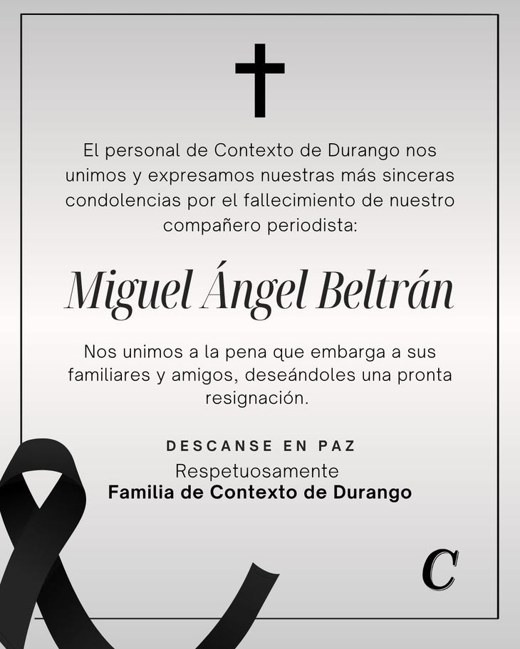 Beltrán fue visto por última vez el jueves pasado cuando salió a trabajar junto con su hijo. Cuando su ausencia fue reportada, comenzaron los operativos de búsqueda que culminaron con el hallazgo de su cuerpo este fin de semana. Las autoridades de Durango aún no han emitido un comunicado oficial.
