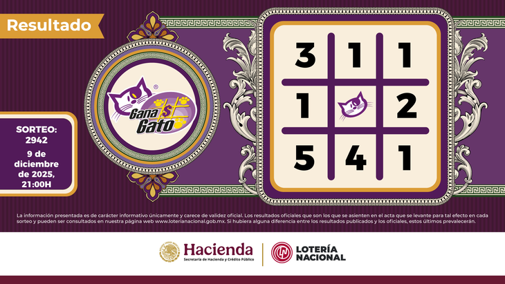 La Lotería Nacional realizó este martes 9 de diciembre del 2025 el sorteo 2942 de Gana Gato, uno de los juegos más divertidos y que generan semana a semana una gran expectativa. Entérate cuáles fueron los resultados y checa si sos uno de los afortunados ganadores.