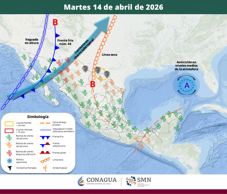 Clima: pronóstico de lluvias en México hoy, martes 14 de abril 2026