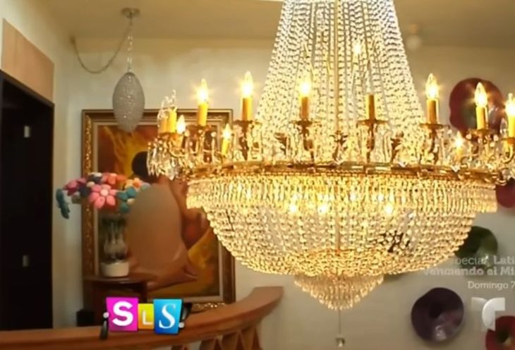 El gran candelabro: En la estancia central, un candelabro elegante y monumental colgaba del techo, iluminando los pasillos llenos de premios, retratos y fotografías que contaban su ascenso al estrellato.