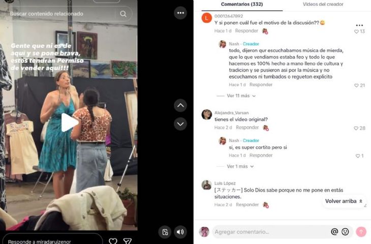 Pero el reclamo no se limitó al aspecto sonoro. La creadora oaxaqueña relató que los visitantes cruzaron la línea del respeto al atacar directamente su sustento.