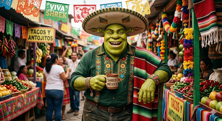 La combinación entre cultura pop y tecnología ha dado paso a nuevas versiones de personajes icónicos. Gracias a herramientas de Inteligencia Artificial, usuarios han imaginado cómo luciría Shrek mexicano, adaptado a tradiciones, vestimenta y escenarios típicos de México. El resultado es una mezcla divertida entre el clásico cuento de hadas y elementos culturales nacionales.