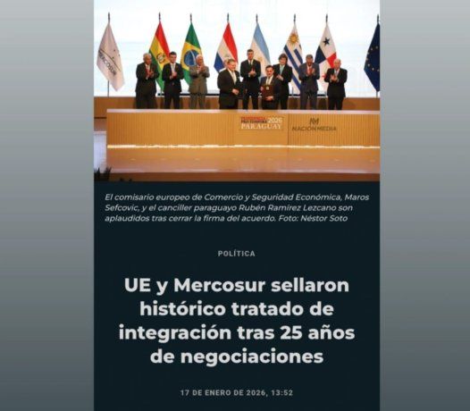 La Nación Paraguay destacó al acuerdo como un "histórico tratado de integración tras 25 años de negociaciones". El país fue anfitrión en esta ocasión y su presidente, Santiago Peña, no disimuló la emoción del encuentro.