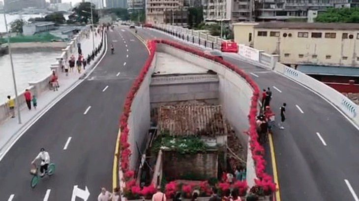 En Guangzhou, China, una mujer se negó a recibir una indemnización de parte del gobierno para demoler su casa y realizar una construcción. Pero la obra avanzó sin importar la tesitura de la mujer que ahora tiene su propiedad rodeada por una autopista.