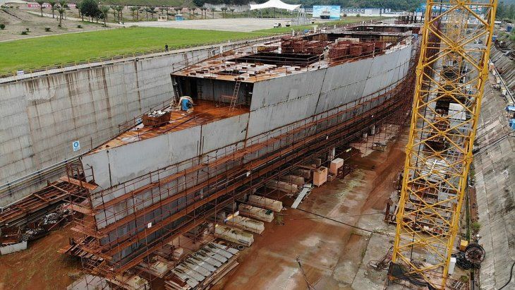 De la obra saldrá una gigantesca réplica del Titanic, el tristemente célebre barco que naufragó hace más de un siglo en el océano Atlántico, causando la muerte a más de 1.500 pasajeros y miembros de la tripulación.