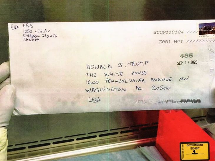 Ese mismo mes envió una carta que contenía el producto desde Canadá a la Casa Blanca, ocupada entonces por Trump, además de otras misivas con el tóxico destinadas a ocho funcionarios judiciales en el estado de Texas.