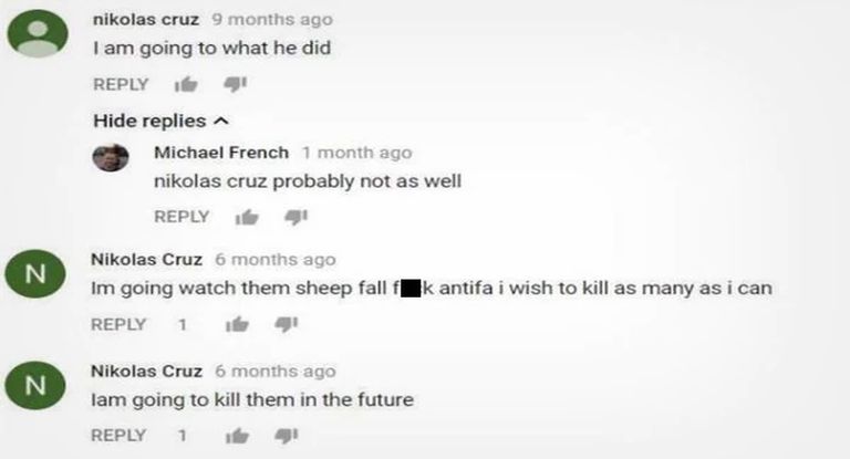 "Deseo matar a tantos como pueda", había publicado en un comentario de Youtube. "Voy a matarlos en el futuro", agregó.