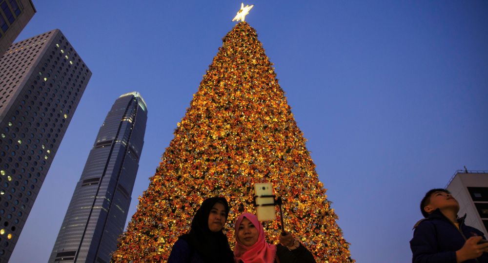 Hong Kong también se prepara para recibir Navidad con un iluminado árbol navideño.