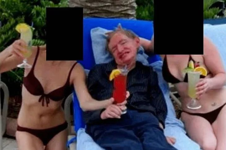 La fotografía que circula en los archivos de Epstein muestra a Hawking relajado en un entorno tropical, acompañado de dos mujeres en bikini, mientras sostiene lo que parecen ser cocktails de frutas.