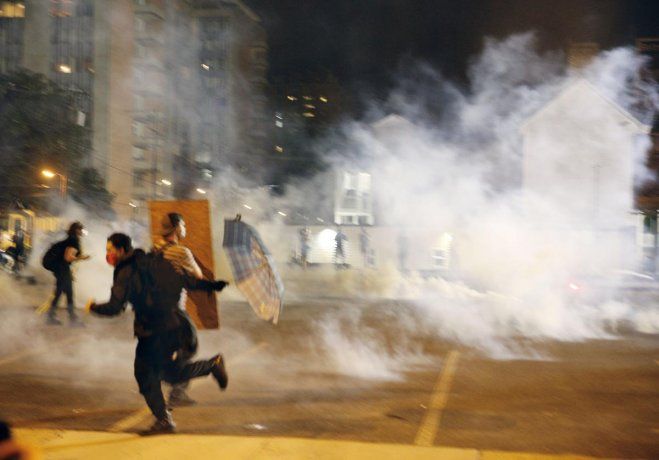 La policía antidisturbios se enfrentó a los manifestantes, algunos de ellos levantaron paraguas para evitar ser alcanzados por el gas pimienta, una imagen que recordó a los militantes prodemocracia de Hong Kong, paradójicamente apoyados por el gobierno de Estados Unidos.