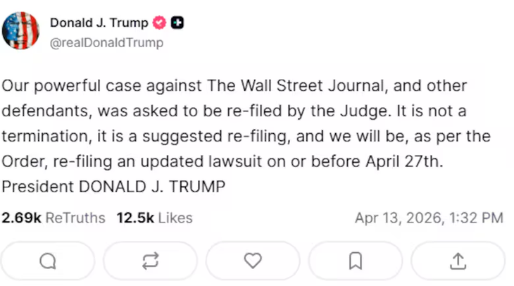 La respuesta del presidente no tardó en llegar. A través de sus redes, Trump sostuvo que el fallo no representa un cierre definitivo del caso, sino una instancia que le permite reforzar su estrategia legal. En esa línea, aseguró que su equipo ya trabaja para volver a presentar la demanda antes del 27 de abril.