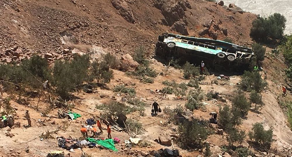 Según la información, el autobús se precipitó, por causas aún no conocidas, en una curva pronunciada de la carretera hacia un abismo de unos 200 metros hasta llegar casi a orillas del río Ocoña.
