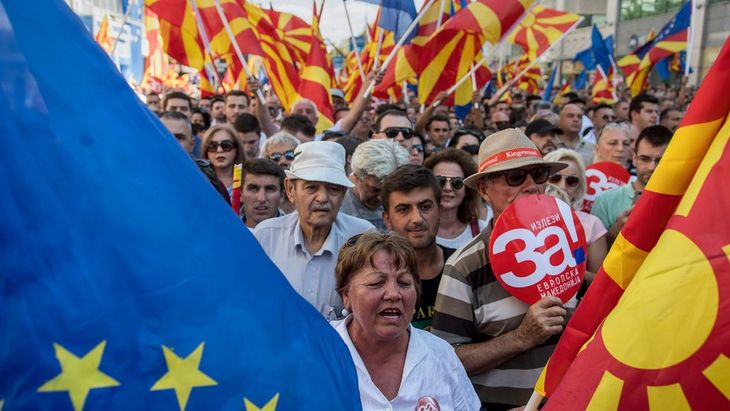 El Gobierno de Macedonia buscaba mejorar las relaciones con Grecia, con miras a unirse a la OTAN y la Unión Europea. Grecia, además, había disputado durante mucho tiempo la palabra "Macedonia", nombre de una de sus regiones y de un antiguo reino griego.