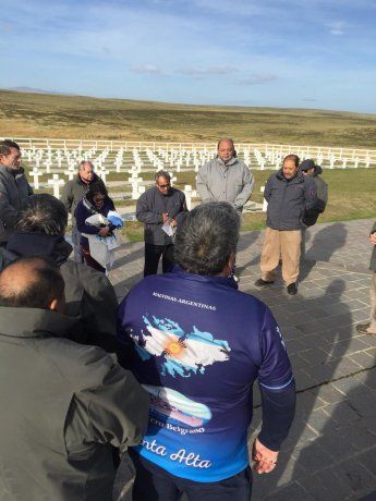 Los catorce excombatientes sanjuaninos trepan las piedras de esa cuesta. Más tarde, irían a Darwin, al cementerio argentino. Un lugar que condensa todo el dolor.