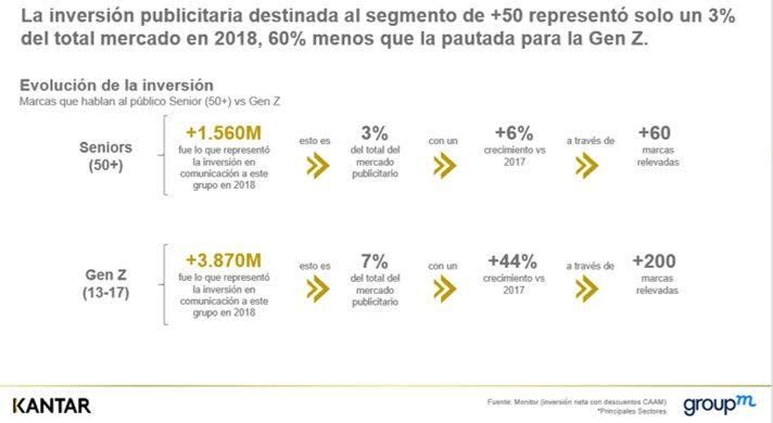 En este sentido, mientras que este segmento representa un 20% de la población (según GroupM considerando datos de Monitor), la inversión publicitaria destinada a ellos fue sólo de un 3% del total mercado en 2018, 60% menos que la pauta dirigida a la Generación Z. Las principales categorías que les hablan son la farmacéutica e higiene y belleza.