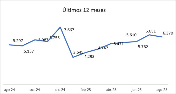 En la comparación con julio, el nivel de actividad mostró una leve retracción. En julio se habían registrado 6651 escrituras, lo que significa que en agosto se produjo una baja del 4,2%.
