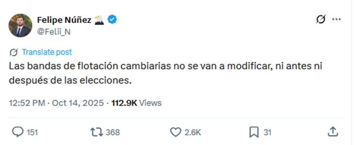 Incluso el propio Luis Caputo declaró desde Washington que: “Hubo una interpretación errónea, si se quiere, una confusión, en función de que el apoyo del presidente y de los Estados Unidos iba a estar solamente hasta el 26 de octubre, dependiendo de las elecciones. No tiene nada que ver con eso lo que pasó realmente en la reunión”. “El apoyo del presidente Trump es a la gestión del presidente Milei. Eso es lo que sí dejó claro. Imagínense que todo este esfuerzo que estamos haciendo desde hace meses no va a estar supeditado a si una elección se gana por un punto o se pierde por dos. Lo que dijo claramente el Presidente fue ‘mientras Argentina se mantenga dentro de este camino, entonces los vamos a seguir, eh, apoyando’. Obviamente, que si en el 2027 ganara el comunismo en Argentina, no me imagino al presidente Trump o al secretario del Tesoro, apoyando, es una obviedad”, agregó. Y luego añadió: “El mercado hizo una interpretación errónea, que seguramente se corregirá mañana (por hoy)”. Para los más desconfiados, esto significa que ya llamó a sus "amigos del mercado", buscando "incentivarlos" para que hagan de hoy "un gran díaa".
