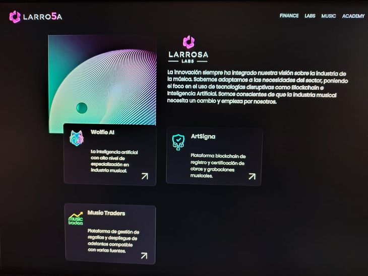 Larrosa trabaja con herramientas de inteligencia artificial y blockchain sobre problemáticas muy puntuales del negocio musical, como la gestión de regalías, la certificación de contenidos, la transparencia en los contratos y el acceso a ingresos globales.
