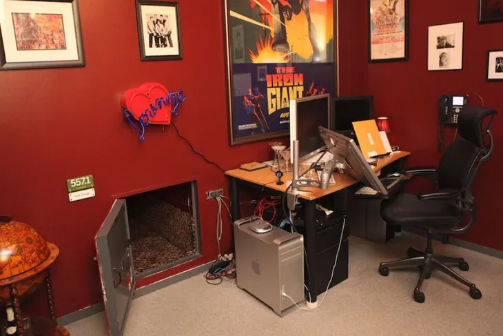 El empresario se adueñó de un cuarto de mantenimiento, alejado del resto, y al cual solo se podía acceder por un conducto, ya que no tenía una puerta. La pieza, descubierta y decorada por Andrew Gordon, un animador de Pixar, fue donde Jobs exploraba lo más profundo de su creatividad sin que lo distraigan.