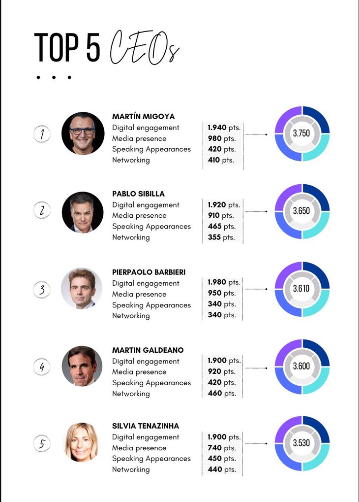 El Top 5 lo completan Pablo Sibilla (Renault), Pierpaolo Barbieri (Ualá), Martín Galdeano (Ford) y Silvia Tenazinha (Salesforce).