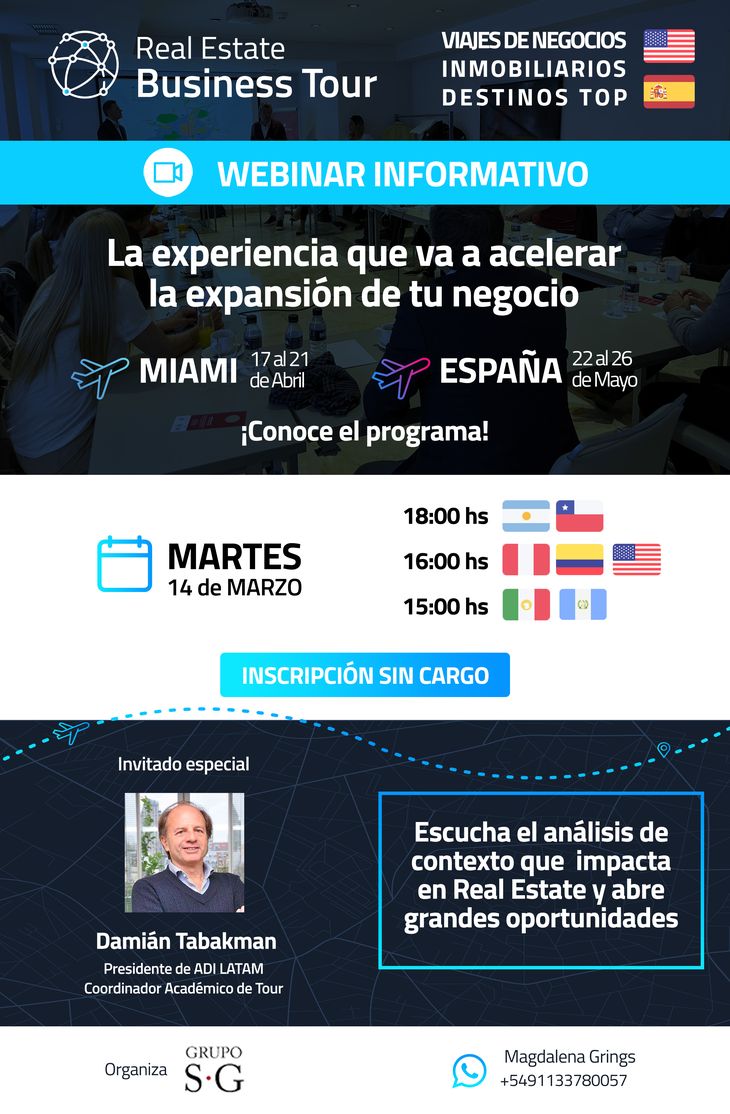 Para inscripciones al webinar, ingresar aquí. Por más información consultar la web https://www.realestate-bt.com/.