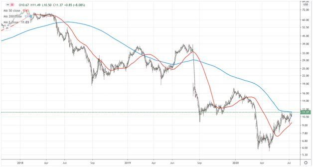 Porque lo que hay que mirar es lo que hacen los precios. Y hoy, están “empezando a dar la vuelta”; están cerca de comenzar a revertir la tendencia bajista que vienen desarrollando desde hace meses. Para eso, es muy útil mirar las medias móviles, que marcan la tendencia que está desarrollando un mercado o acción en particular: