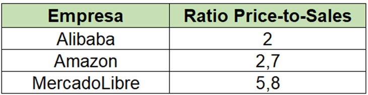 Alibaba tiene una valuación mucho menor que Amazon y MercadoLibre. El mercado no es tonto y no por nada tiene este ratio tan bajo. Se explica básicamente por la situación e incertidumbre de China.