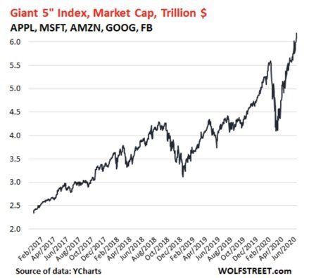 El S&P 500 se convirtió en algo como “FAANG + el resto del mundo”. Vean el valor total por bolsa (capitalización bursátil) de estas 5 compañías:
